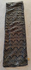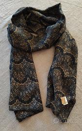 Foulard pesante donna. Elegante motivo geometrico blu e marrone. Materiale : poliestere. Misura: 180x 104 cm. NUOVO.