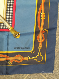 Bellissimo foulard originale firmato Pierre Balmain vintage in pura seta con orlo fatto a mano