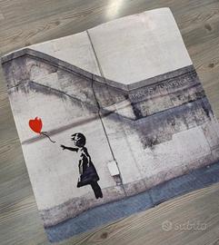 Foulard quadrato la bambina con il palloncino di Banksy in seta e viscosa. Dimensioni 70x70 cm circa. Nuovo con cartellino