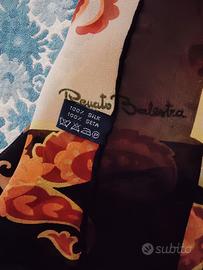 Sciarpetta Renato Balestra 100% seta, rosa con fiori dorati e bordi neri , made in Italy, mai indossata e in perfette condizioni