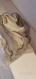 Vendo foulard di seta 100% usato pochissimo in ottimo stato. Colore perlato dal grigio chiaro all'avorio. Molto grande 200x104.molto morbido.