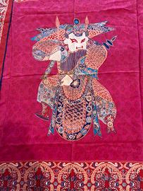 Foulard pura seta Pancaldi. Fondo rosso disegno centrale samurai. Come nuovo. 82 x 82