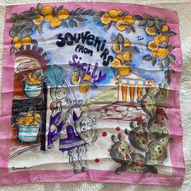 Bellissima sciarpa foulard 100% seta vintage di ralph lauren. Realizzata in Giappone, freschissima e dalla fantasia super particolare. Praticamente nuova, condizioni perfette! Misure 85x85