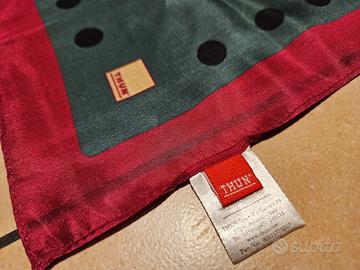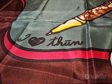 Foulard di Thun cento per cento seta, quadrato, multicolor con fondo ciclamino. Made in Italy. Anche da collezionare per amanti di preziosi oggetti Thun. Introvabile. Si può anche usare come pareo per la spiaggia. Dimensioni: 105 x 105 cm.