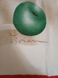 Vanni Viviani foulard vintage 85x85 seta Made in Italy anni 70 motivo mele bordo rosso