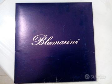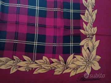 Foulard di flanella di " Blumarine" in confezione cartonata blu // Nuovo // Colori:rosso, verde, oro // cm. 90 x90 // Vintage