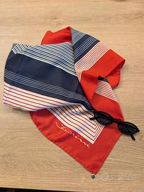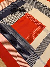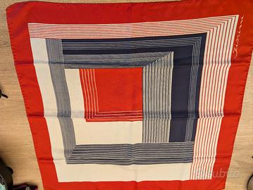Descrizione: Splendido foulard vintage firmato Fiorini, con un elegante design geometrico a righe e blocchi di colore nei toni del rosso, blu scuro e crema. Un accessorio versatile e intramontabile, perfetto per dare un tocco di classe a qualsiasi outfit. old money perfetto a Portofino e in costiera amalfitana ma anche in città Condizioni: Eccellenti condizioni vintage.