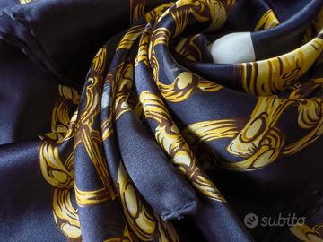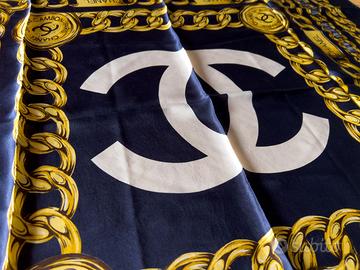 Stupendo foulard vintage in seta originale Chanel, dimensioni 86x86cm. Accessorio iconico con design raffigurante catene dorate, medaglie con logo e scritta "CHANEL PARIS 31 RUE CAMBON". Perfetto, praticamente nuovo. Consegna a mano a Grado, Trieste e provincia di Gorizia. No perditempo.
