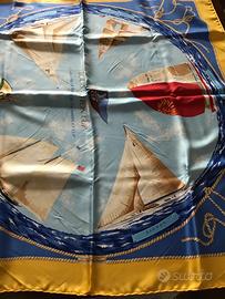 Foulard Vintage originale Louis Vuitton 100% seta, dim. 86x86 colore giallo e azzurro scatola CBBO, condizioni eccellenti, vintage molto raro, serie limitata Challenger Race for America's Cup.
