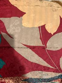 Splendido foulard originale Vogue in pura seta, caratterizzato da un'elegante stampa floreale astratta a macro-disegno. • Colori: Base bordeaux/vinaccia con dettagli in azzurro polvere, crema, ocra e grigio perla. • Materiale: 100% Seta (tessuto operato con trama floreale visibile in controluce). • Dettagli: Logo "VOGUE" visibile nell'angolo inferiore destro. Bordi rifiniti con cura. • Condizioni: piu che buone • Stile: Perfetto da indossare al collo, come fascia per capelli o annodato alla borsa per un tocco chic senza tempo. Un pezzo da collezione per gli appassionati della celebre rivista di moda. 💰