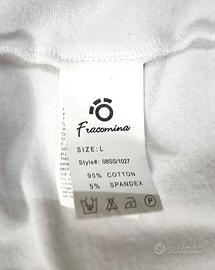 Felpa bianca Fracomina, Made in Italy, in morbido cotone stretch (95% cotone, 5% spandex), cappuccio con cordino argentato, decorazioni a strass su logo “FJ” e cappuccio, due tasche a marsupio.