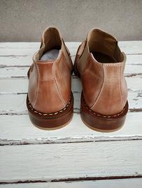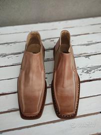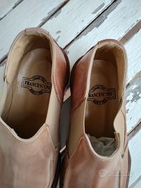 Scarpe da uomo con banda elastica, nuove (mai indossate), color beige leggermente spatolato. In vero cuoio. Francesconi Collection. Dettagli di cucitura a vista.