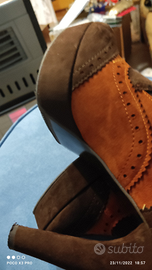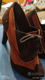Sono con zeppa davanti 2 cm e mezzo tacco 12 numero 39 marchio Persua' calzaturificio italiano piccolo difetto nel tacco due righette all'interno se no sono usate pochissimo erano difettate già quando le avevo prese non porto più i tacchi