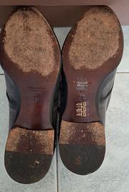 Splendide francesine (modello Oxford) del prestigioso calzaturificio Bruglia. Una calzatura intramontabile, caratterizzata dalla classica punta a coda di rondine e un'allacciatura chiusa estremamente elegante. Caratteristiche principali: Modello: Francesina Brogue (allacciatura chiusa). Materiale: Vera pelle di alta qualità con sfumature naturali. Suola: In vero cuoio (stampigliatura originale visibile). Dettagli: Decorazione a coda di rondine sulla punta. Produzione: Interamente Made in Italy. Taglia: 37. Condizioni: Le scarpe sono in buone condizioni generali. La tomaia in pelle è morbida e presenta le tipiche pieghe naturali da utilizzo che ne esaltano l'aspetto autentico. La suola in cuoio mostra i normali segni di camminata ma è perfettamente integra. Note: Vendute con la loro scatola originale Bruglia.