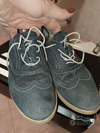 Francesine donna Pittarosso in pelle colore blu jeans con suola in legno