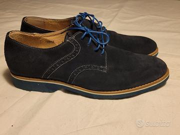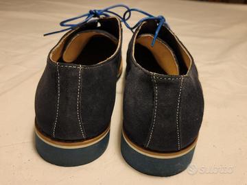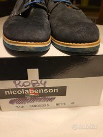 Eleganti francesine da uomo in camoscio blu, marca Nicola Benson, usate solo un giorno.