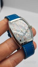 Dei Greci Orologi , storica orologeria nel centro di Roma vende Franck Muller Sunset misura grande. Ottime condizioni sia estetiche che meccaniche, appena revisionato, viene venduto con relativa fattura e 2 anni di garanzia sul buon funzionamento. Dichiaro che l’orologio è originale e coevo in ogni sua parte. Prezzo non trattabile. Grazie