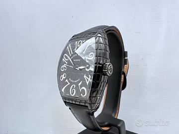 Particolare versione di un classico di casa Franck Muller con cassa 36x50 e quadrante con effetto coccodrillo. Scatola, garanzia e manuale di istruzioni.