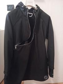 Zip trasversale e cappuccio.