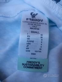 Leggings Sportivi Freddy SUPERFIT small, Motivo Houndstooth Bianco e Nero - Ottime Condizioni] Descrizione: In vendita splendidi leggings sportivi Freddy della linea SUPERFIT, taglia SMALL (S). Questi leggings sono caratterizzati da un classico e intramontabile motivo pied-de-poule (houndstooth) in bianco e nero, perfetto per un look sportivo ma sofisticato. La tecnologia SUPERFIT di Freddy è progettata per avvolgere le forme, offrendo supporto e modellando la silhouette grazie al tessuto elasticizzato e alle cuciture strategiche. Sono ideali per l'allenamento in palestra, lo yoga, il pilates o anche per un outfit casual-sportivo. Caratteristiche Principali: Marca: Freddy Linea: SUPERFIT Colore: Motivo Pied-de-poule Bianco e Nero Taglia: Small (S) - Controllare le misure dettagliate di seguito. Materiale: 87% Poliestere, 13% Elastan (tessuto tecnico traspirante ed elastico). Dettagli: Fascia in vita elasticizzata (9 cm) con logo Freddy SuperFit argentato all'interno. Cuciture piatte in contrasto bianco per un comfort ottimale e per definire le linee. Logo Freddy D.I.W.O. argentato riflettente stampato esternamente sulla gamba destra. Tasca aperta sinistra per piccoli oggetti. Misure (prese in piano, come da foto): Vita (fascia elastica): cm 30 (circa) Lunghezza totale (esterna): cm 85 (circa) Condizioni: ✨ In allegato trovi l'immagine dimostrativa del capo indossato!
