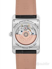 Un segnatempo di rara eleganza che unisce la tradizione orologiera svizzera al fascino senza tempo della complicazione moonphase. La cassa carrée in acciaio incornicia un quadrante raffinato con indicazione delle fasi lunari, movimento automatico visibile attraverso il fondello trasparente.