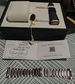 CINTURINO: bracciale in acciaio, cinturino in pelle di vitello blu con finitura nabuk e uno sintetico tutti con sgancio rapido.