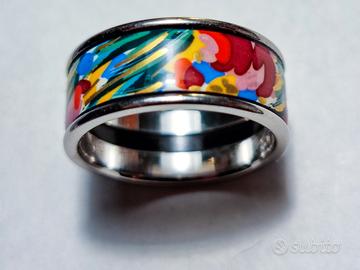 Il suo design semplice e la superficie dello smalto artisticamente decorato lo rende un pezzo di pura gioielleria. Nonostante la loro forma elementare, questi anelli sono veri eyecatchers.