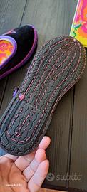 Originali Velluto da Donna,Materiale suola in Gomma di Bicicletta.Altezza asta: alla caviglia. Capsule edizione limitata (terminata) by ELIO FIORUCCI. disegnata dallo stilista. esterno nero/viola con fiori cucini in raso ed interno con disegn in fiori, tipico Fiorucci