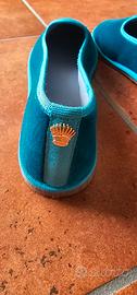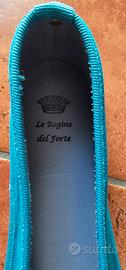 Nuove mai indossate Friulane in velluto color petrolio con profilo turchese tg.40