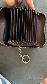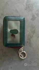 Portafoglio per carte di credito, porta biglietti da visita con cerniera, protezione RFID, portachiavi, dimensioni compatte. leggero difetto nel retro (colori di una foto rimasti sulla plastica)