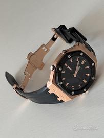 Nuovo Acciaio oro rosa Bracciale gomma SpediIone immediata e accurata