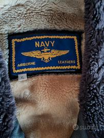 Impostato dagli Stati Uniti, san Diego più precisamente,giacca in pelle aviazione militare, interno in pelliccia biondo non removibile, collo in pelliccia marrone anch'esso fisso. Pelle stupenda, morbida.taglia XL. prezzo basso poiché ha bisogno di essere ingrassata