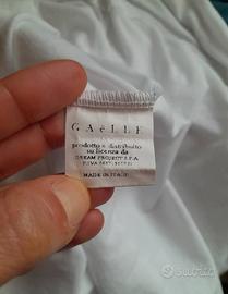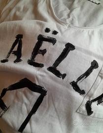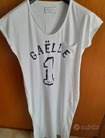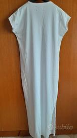 Abito lungo DONNA, in cotone 100%, bianco con scritta nera, TAGLIA 2 veste secondo me una M, ha uno spacco solo su un lato, rifatto orlo rimane comunque abbastanza lungo,