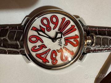 Vendo GaGà Milano Manuale 48mm con quadrante originale in madreperla naturale e numeri arabi oversize rossi applicati.