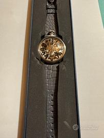 Vendo GaGà Milano Manuale 48mm Skeleton, con quadrante e fondello trasparente che mostrano interamente il movimento meccanico.