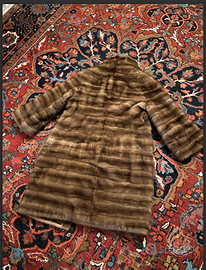 SPETTACOLARE e PREGIATA pelliccia 3/4 realizzata in VISONE FEMMINA NATURALE lavorata a pannelli orizzontali. Di grande pregio, firmata dall'Atelier GAJOTTO, dal sapore moderno/contemporaneo. Linea essenziale, struttura leggera e pelli setose e luminose, con finiture impeccabile, fodera in satin, maniche svasate. Un capo esclusivo, elegante e senza tempo. CONDIZIONI: ottimo stato conservativo, se proprio bisogna individuare un difetto, SI SEGNALA una lievissima usura all'imbocco delle tasche, peraltro poco visibile perchè nascosta, che non compromette l'estetica nè il pregio del capo. Veste taglia unica, indossabile da una 46/52, di seguito le misure: