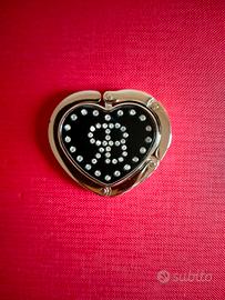 Gancio per borsa Renato Balestra a forma di cuore con strass su sfondo nero e finitura argentata pieghevole