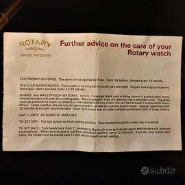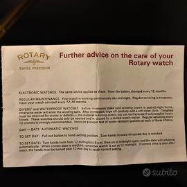 Per i collezionisti della marca di orologi Rotary, garanzia ufficiale in discrete condizioni di conservazione. Dimensioni: cm 14X9,