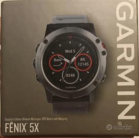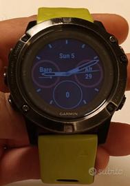 Garmin Fenix 5X vetro in Zaffiro con doppio cinturino uno giallo e l altro nero. Usato pochissimo. Scatola e garanzia. Come nuovo.