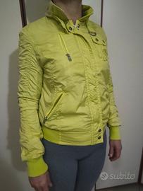 Vendi questa bellissima giacca a vento color giallo lime/fluo, perfetta per dare un tocco di colore ai tuoi outfit o per le attività all'aperto! Il colore è super vibrante e dal vivo rende ancora di più.
