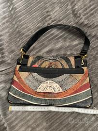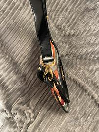 Gattinoni. Borsa in pelle, fantasia, con inserti in vernice e cavallino. Parti metalliche dorate