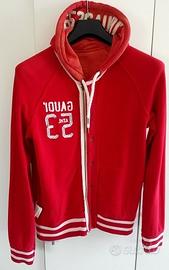 Vendo Bellissima Felpa con Cappuccio GAUDI', ORIGINALE ed AUTENTICA al 100%, Utilizzata di Raramente ed in Perfette Condizioni, Praticamente come Nuova, in Cotone 100% garzato internamente, Pulita, Colore Rosso Slavato Effetto Vintage con Laccio Bianco e con Scritta Bianca a Contrasto sul Retro del Cappuccio, Numero a Contrasto Sovrapposto seul lato Sx, Taglia S (veste comoda quindi anche per chi porta una 48/50!