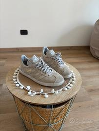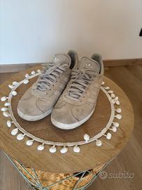 Vendo adidas modello gazelle, taglia 38, scamosciate color bianco grigio. Usate in buono stato. Vendo perché numero piccolo.
