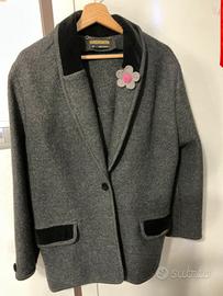 Giaccone lana cotta, Geiger, made in Austria, lana cotta grigia, bottoni e risvolto tasche in velluto nero