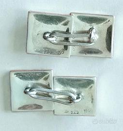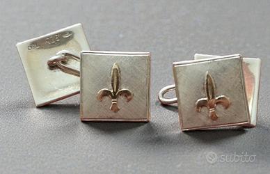 .Elegante coppia di gemelli vintage da polso realizzati in argento massiccio 925, con raffinata applicazione centrale a fleur-de-lis (giglio araldico) in oro 750 . ottime condizioni (solo da pulire un po) perfettamente utilizzabili