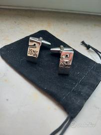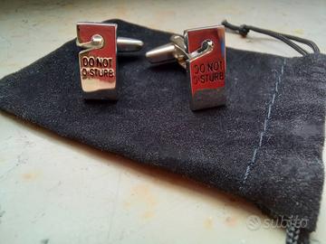 Gemelli da camicia uomo in acciaio, nuovi, mai indossati, riproduzioni dei cartelli da appendere alle maniglie della porta per la privacy. Originalissima idea regalo