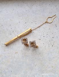 gemelli effetto dorato con pietre fermacravatta effetto dorato usati solo una volta