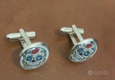 Copppia gemelli motivo “la muerte” mai indossati in metallo e plastica