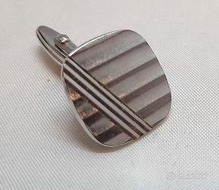 Questi gemelli sono un accessorio di moda classico dell'epoca, con un design a righe pulito e geometrico in stile Art Déco/Mid-Century, probabilmente degli anni '60-‘70.