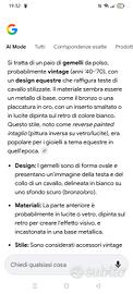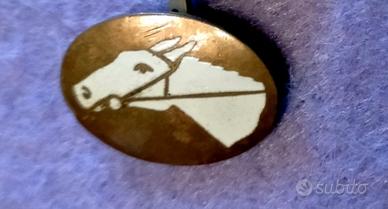 GEMELLO DA POLSO OVALE ANNI 40 CON DESIGN EQUESTRE CHE RAFFIGURA TESTE DI CAVALLO STILIZZATE. MATERIALE: BRONZO O METALLO DORATO CON SOGGETTO IN LUCITE O VETRO